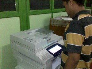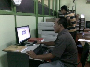 Pak Mustofa sedang melakukan pemindaian skripsi