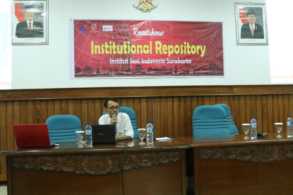 Roadshow Institutional Repository adalah kegiatan talkshow yang diadakan UPT Perpustakaan dalam rangka kelanjutan kegiatan institutional repository pada tahun sebelumnya. Talkshow kali ini memfokuskan pada unggah mandiri untuk dosen dan para mahasiswa. Roadshow ini dilaksanan pada Hari Senin, 18 Desember 2017 di Ruang Seminar ISI Surakarta, dengan mengundang Wakil dekan I Fakultas Seni Pertunjukan dan Fakultas Seni Rupa dan Desain, perwakilan pejabat Pascasarjana, perwakilan pejabat LPPM, serta Kaprodi-kaprodi dan perwakilan dosen.