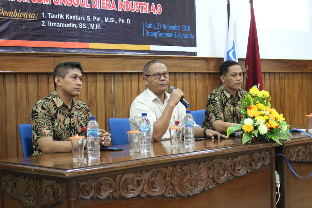 Untuk itulah pada hari rabu, tanggal 27 Nopember 2019 UPT Perpustakaan menyelanggarakan seminar nasional dengan tema Strategi Kolaboratif Untuk SDM Di Era Industri 4.0 dengan narasumber: 1) Taufik Kasturi, P.Si., M.Si., Ph.D; 2) Itmamudin, SS., M.IP. dengan moderator Mustofa. Seminar tersebut diikuti oleh 70 peserta dari berbagai instansi dan berbagai daerah. Seminar tersebut dibuka langsung oleh Rektor ISI Surakarta Dr. Drs. Guntur, M.Hum.