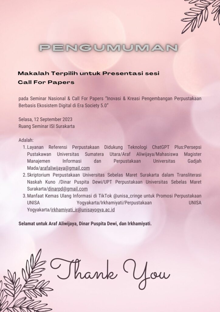 PENGUMUMAN MAKALAH TERPILIH PRESENTASI