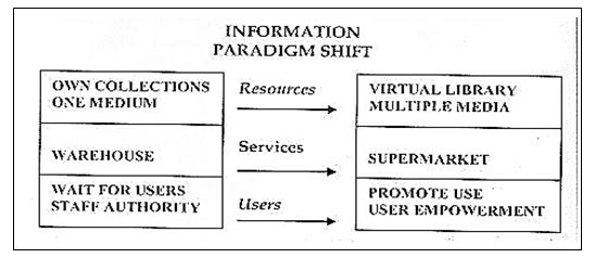 Saat ini pergeseran layanan informasi pada perpustakaan berakibat pada perubahan perilaku pola kerja dan orientasi institusi yang bergerak dalam bidang ilmu pengetahuan.