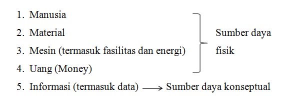 Manajemen informasi yang dilakukan oleh manajer dengan mengelola lima jenis sumber daya :